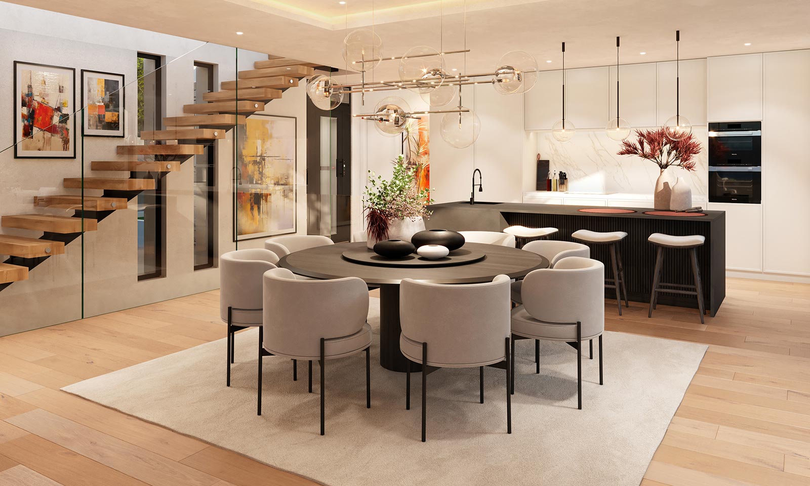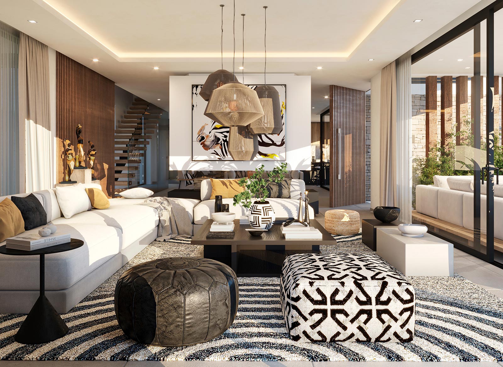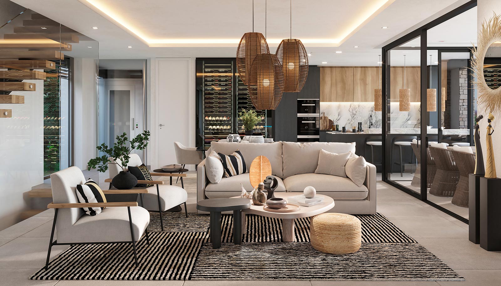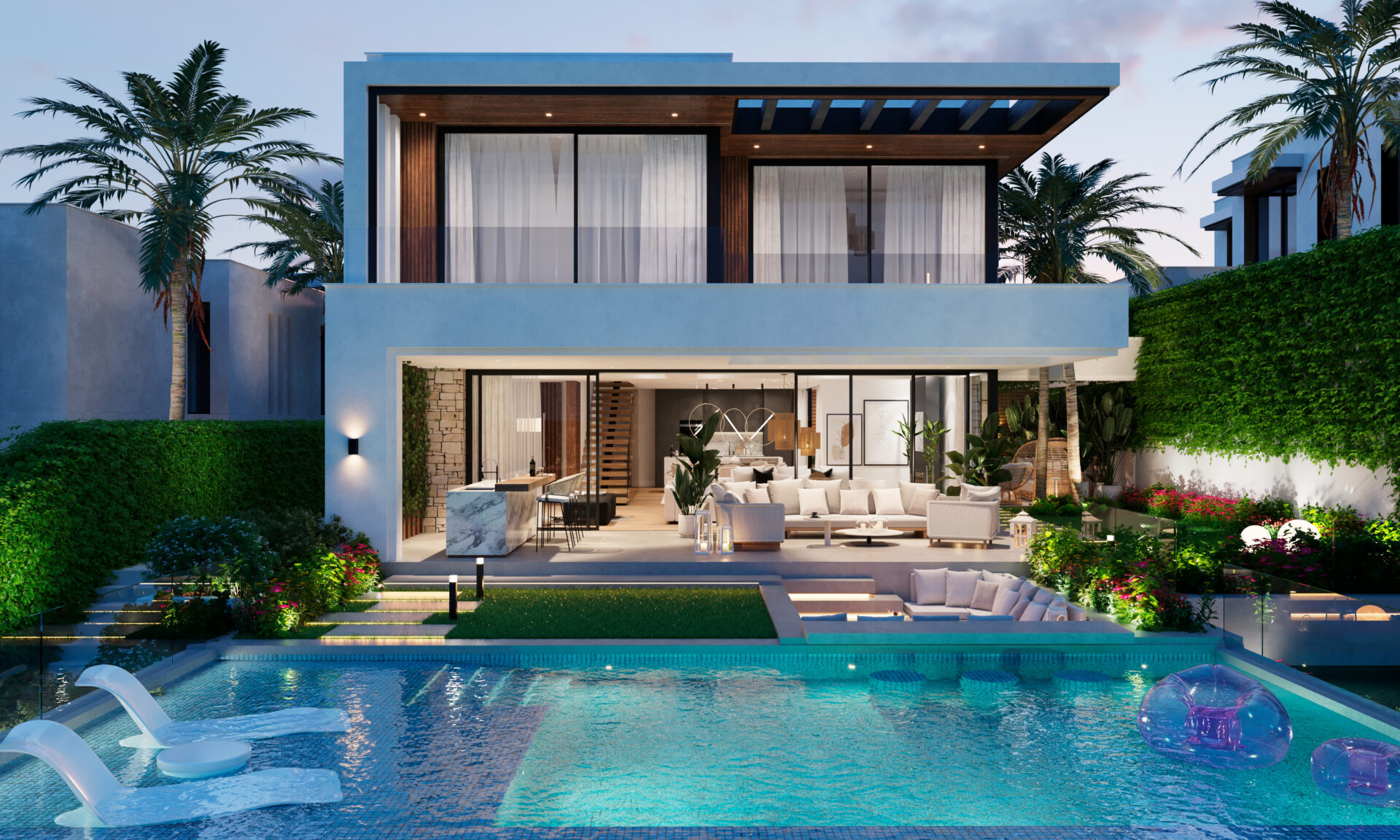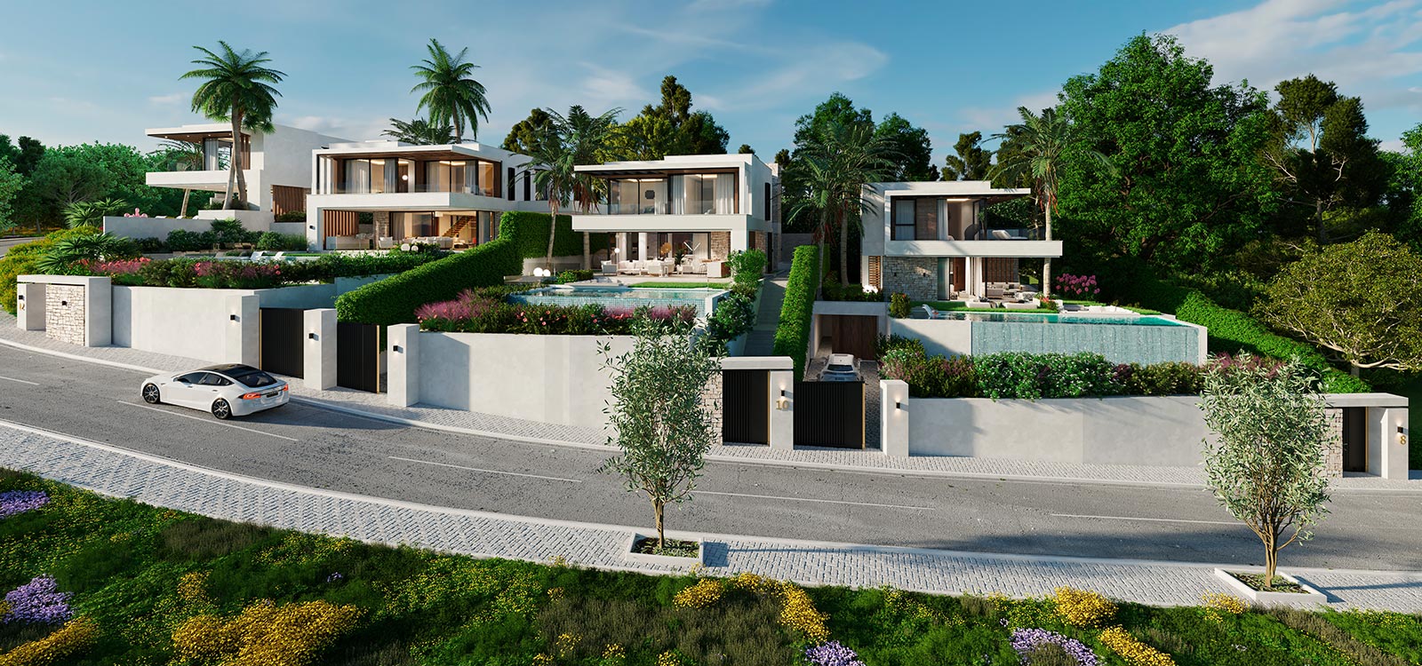 These stunning villas feature a spacious and modern open-plan design, with a fully equipped kitchen and living room that flow seamlessly onto expansive panoramic terraces. The villas are built to the highest standards, using the finest materials and finishes.