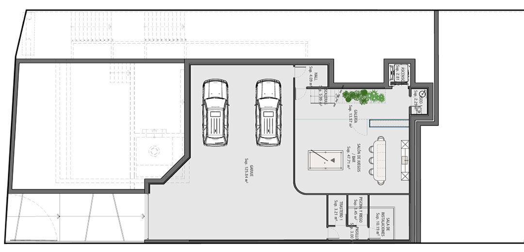 The basement includes a double garage and an additional ample space, offering endless possibilities to create your ideal personal area.